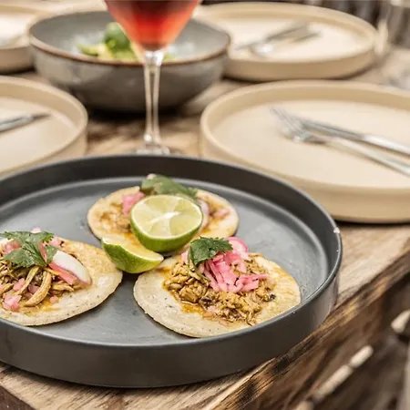 Comece o seu dia com o pequeno-almoço feito na hora. Tem 2 restaurantes no Una Vida de Tulum. Ele está aberto para high tea e diner. Além disso, este hotel de Tulum dispõe de um bar da piscina. Servindo pratos da cozinha Mexicaanse, Cochitos está a 650 metros de distância.